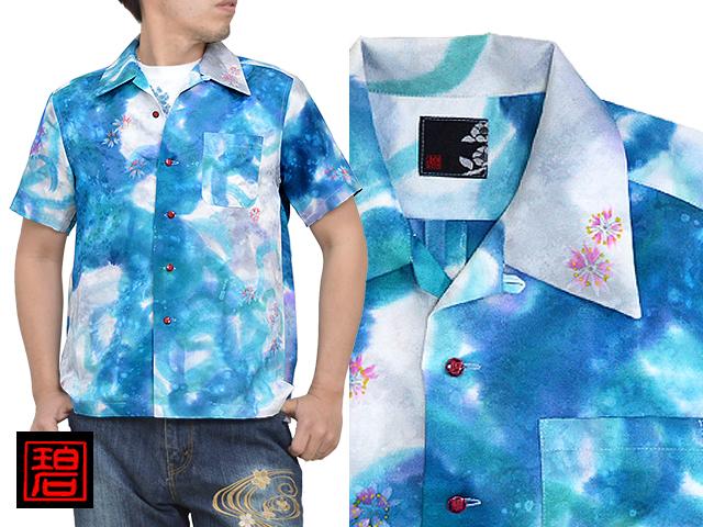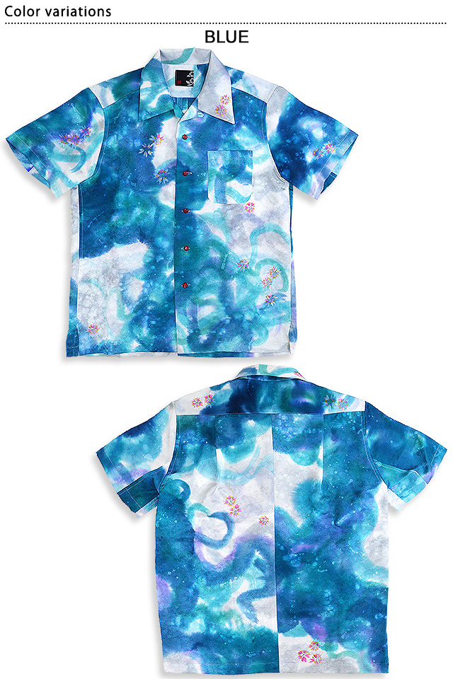 | 手描きシルクジャガードアロハシャツ「さくら」◆碧(あお) AAO-M02811 | |||||||||||||||