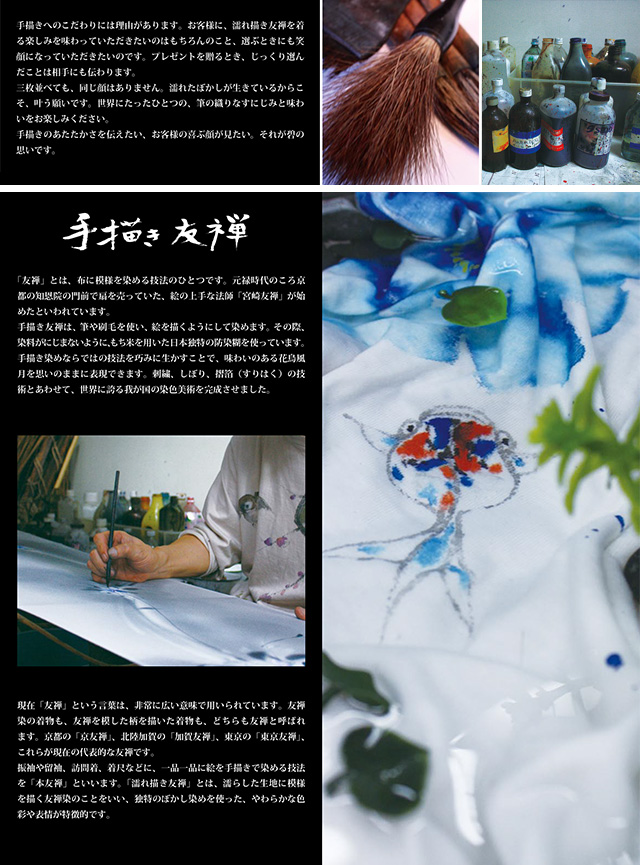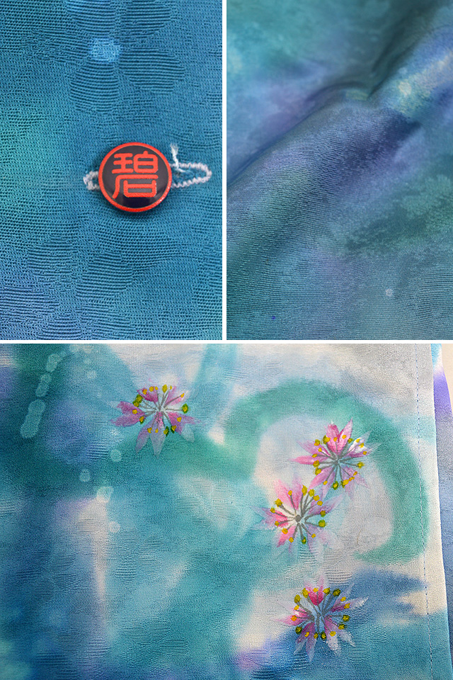 酸性染料で染めており、機械では表現できない。ハンドメイドの温もりを感じさせてくれます。
