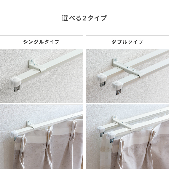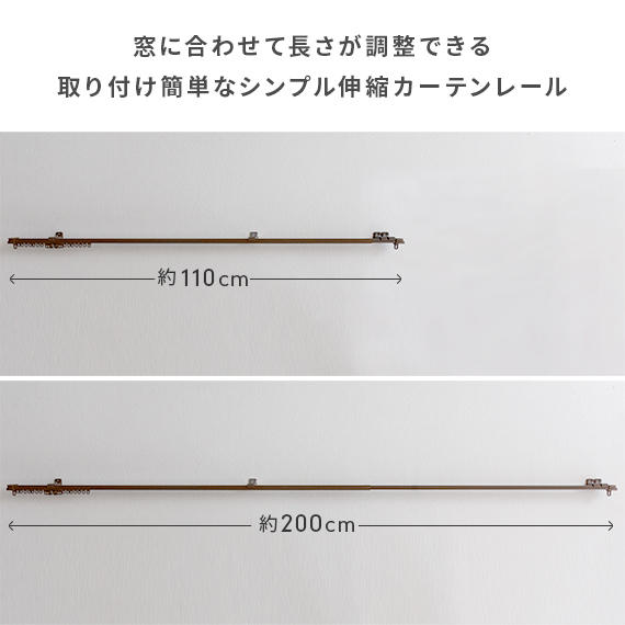 カーテンレール シングル 伸縮 2m 伸縮レール 遮光性アップ リターンキャップ 簡単取り付け 両開き 片開き シンプル モダン 伸縮カーテンレール 110〜200cm 用 シングルタイプ ホワイト ブラウン カーテンレールのみの販売