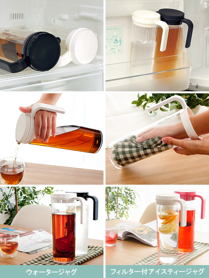 ピッチャー 水差し 冷水筒 麦茶ポット 耐熱 横置き アイス コーヒーポット カラフェ デカンタ おしゃれ 横 麦茶 ポット 蓋 ウォーターピッチャー 1.2L 縦置き・横置き選べる2WAYウォータージャグ1.2Lサイズ