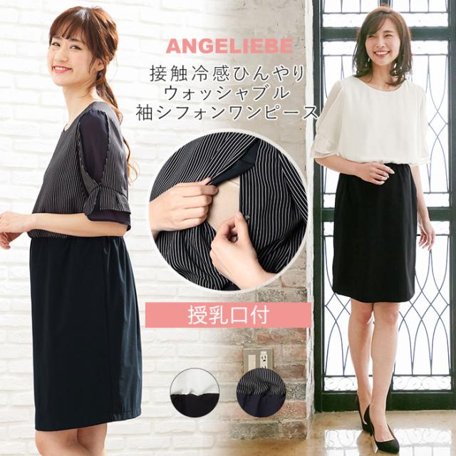授乳服 マタニティ ワンピース LOVE MIC 授乳口付 接触冷感ひんやりウォッシャブル 袖シフォンワンピース 産前 産後 妊婦服