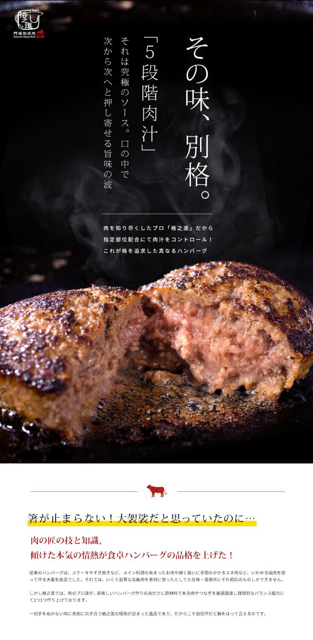 黒格ハンバーグに比べ、比較的あっさりとした味わいで、特に女性の方に人気のある商品です。
