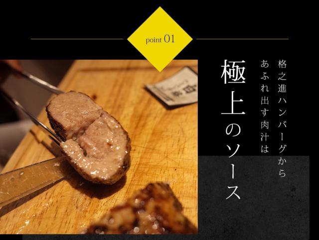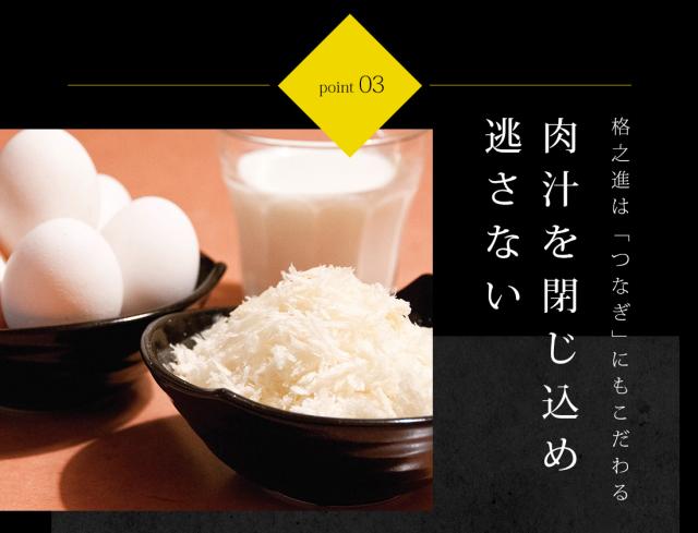 白格ハンバーグは「黒毛和牛」と「白金豚」を使用した合挽きハンバーグです。