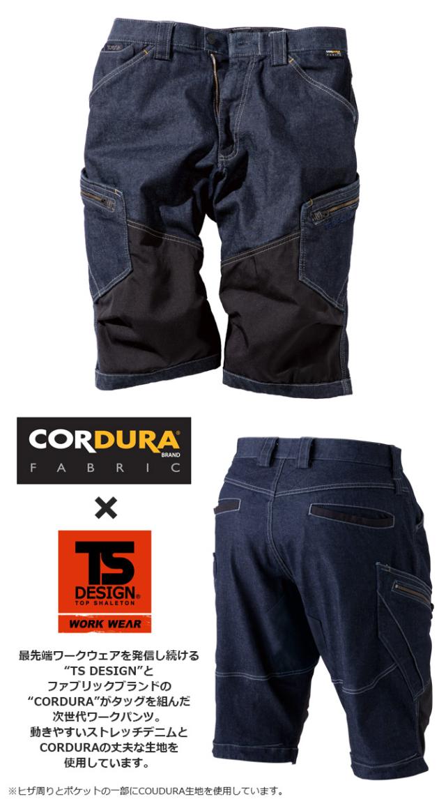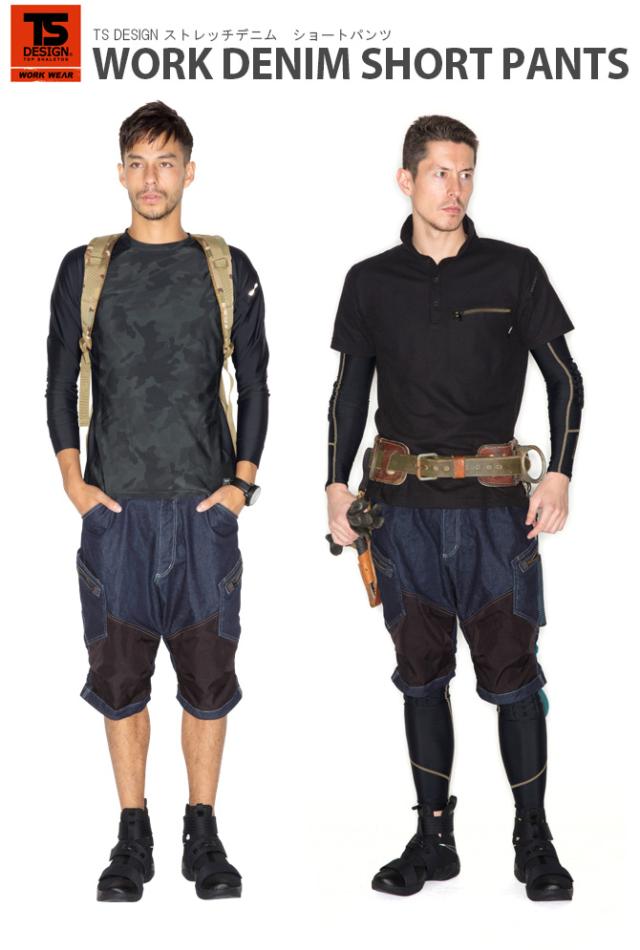 メンズ デニム ニッカーズ ショートカーゴパンツ メンズ ハーフパンツ ストレッチ 作業着 デニム TS DISIGN 藤和 51345