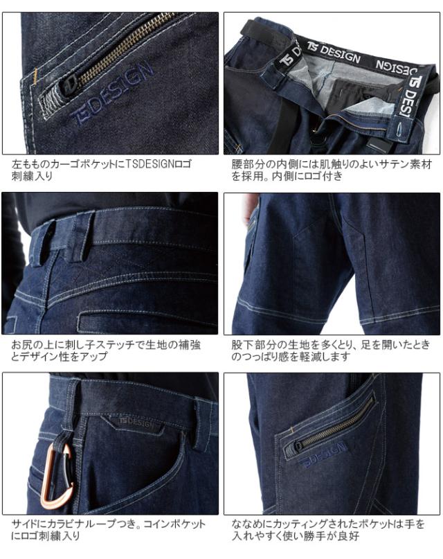 | TS DISIGNのストレッチ性に優れたポリウレタン糸使いの生地を採用した、メンズニッカーズショートカーゴパンツ! 伸縮性に優れたストレッチデニム素材で作業の邪魔をせず、すり減りやすい膝部分にはナイロンの約7倍もの強度を持つ耐久力の優れた丈夫なコーデュラが使用されており、過酷な現場で履いても廃れにくい♪ また腰部分には刺し子仕様の補強が施されており、両脇にはダブルループやコインポケット刺繍、クイックアクセスポケットもついており機能性も◎! 動きやすくて丈夫な、様々なスタイリングができる新定番カーゴパンツです。 | ||||||