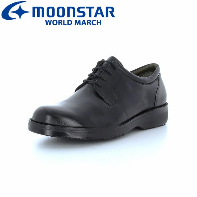 送料無料 ムーンスター ワールドマーチ メンズ スニーカー カジュアルウォーキングシューズ ビジネスシューズ 靴 WM540A ブラック 日本製 国産 黒 蒸れを防止 抗菌防臭 外羽根 幅広4W 高機能 キップ革 ステッチダウン 通勤