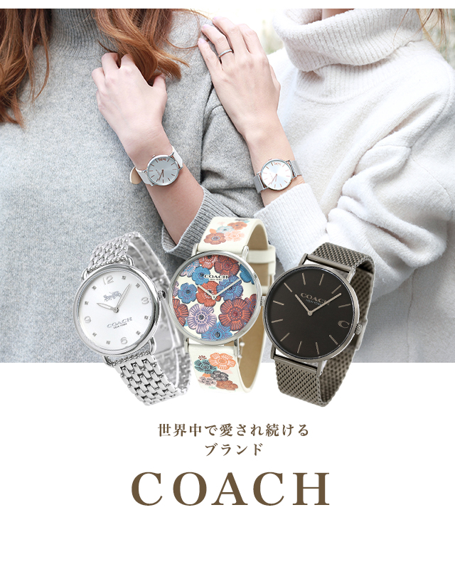 3年保証キャンペーン コーチ グランド 28mm クオーツ レディース 腕時計 14502975 COACH GRAND アナログ シルバー ◆コーチは1941年にマンハッタンの小さなロフトで皮革製品の家内工業として始まりました。今日では世界中で絶大な人気を誇るファッションブランドです。男女問わず多岐にわたるシックで機能的なアクセサリーにきめ細かな最高品質の素材を用いて、現代的なアメリカンスタイルを取り入れた身近な高級品という新しい定義を形成しています。コーチブランドの柄、色、詳細な金具を取り入れたコーチウォッチは、最新のコーチバッグやデザインコレクションと新鮮でファッショナブルにマッチすると共に、精密なクオーツを備えてます。 文字盤のロゴデザインと、ころんと丸みを帯びたケースがポイント。女性らしい腕元を演出します。シーンを問わずお使いいただけます。自分へのご褒美にはもちろん、プレゼントにもオススメです。