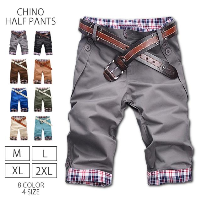 ハーフパンツ メンズ チノパン ボトムス 8色 チェック柄 短パン ロールアップ #Pant202 M便 BL
