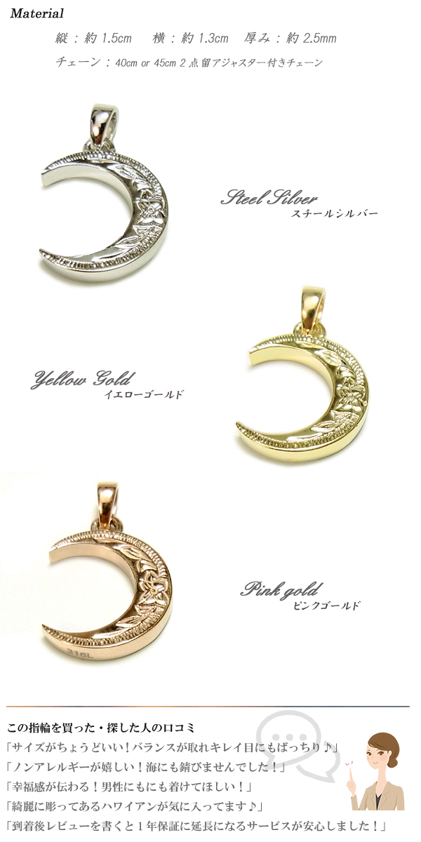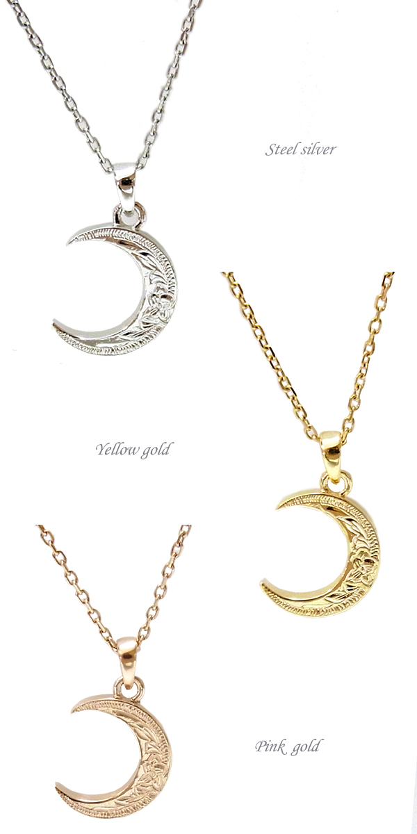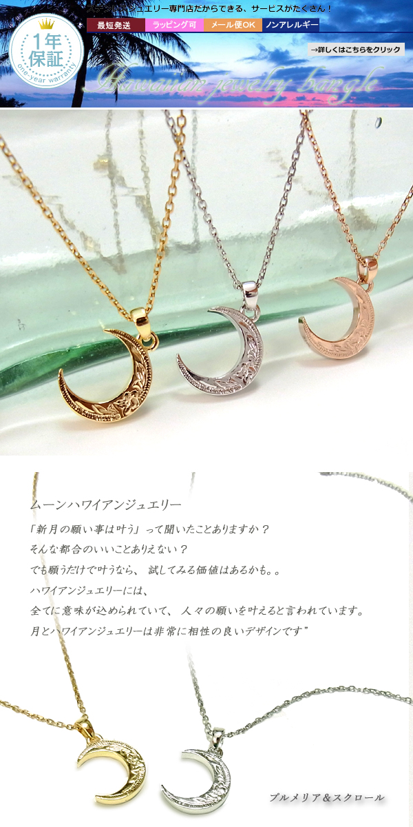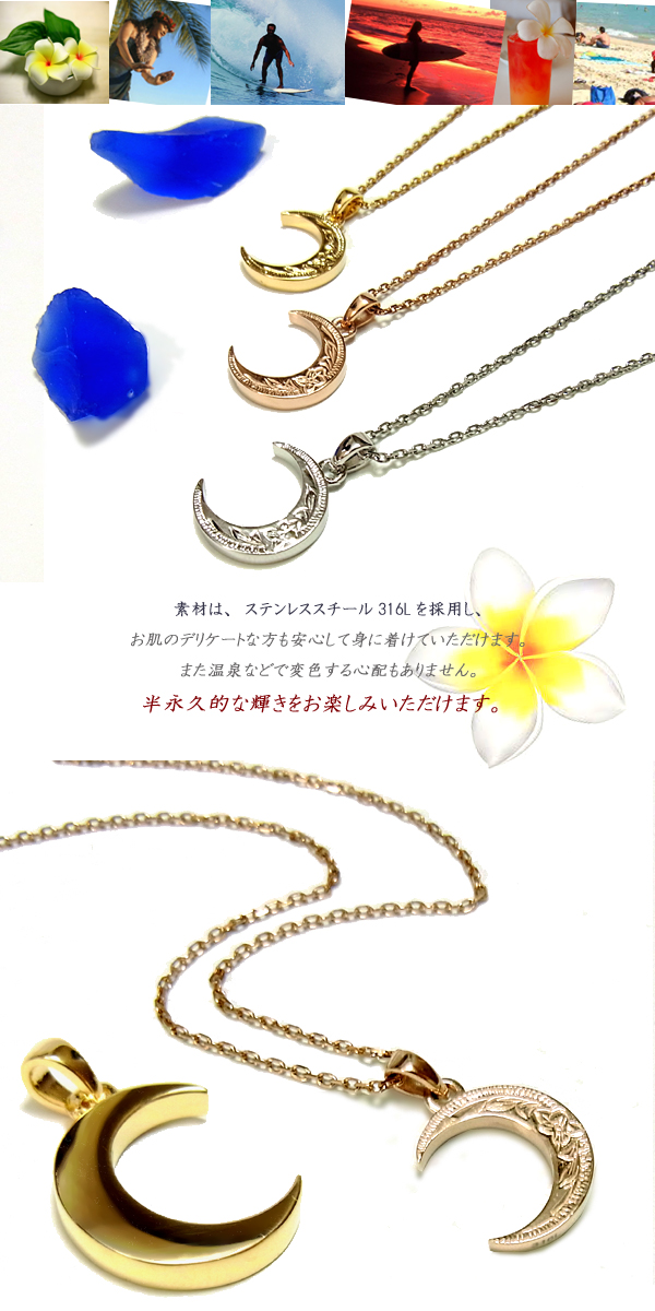 送料無料ハワイアンジュエリー ペンダント ネックレス ムーン 月 三日月 プルメリア ラッピング対応 アレルギー対応
