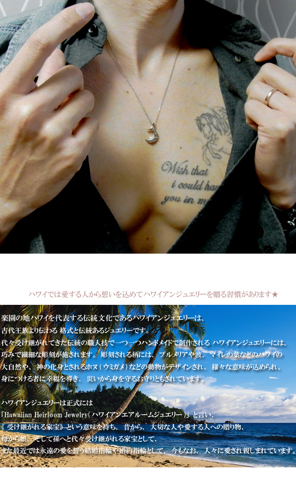 ハワイでは愛する人から想いを込めてハワイアンジュエリーを贈る習慣があります★遠い昔からハワイアンジュエリーは人々の大切な想いとともに身に着けられてきました。