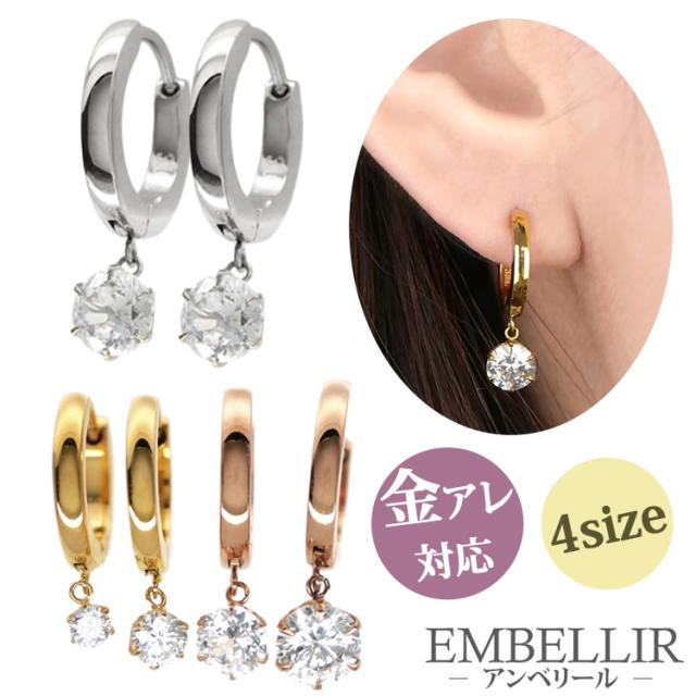 金アレ対応 [EMBELLIR] ステンレスピアス キュービックジルコニアステンレスフープピアス フープピアス 両耳用 キュービックジルコニア サージカルステンレス