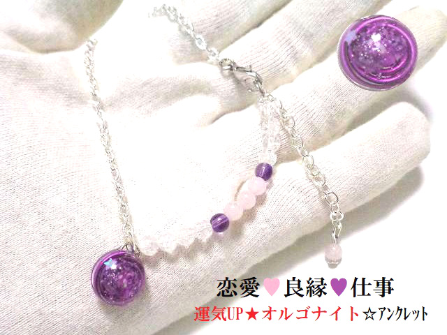 恋愛成就・片思い成就・良縁★ローズクォーツ・アメジスト★恋愛★アンクレット★オルゴナイト★風水★パワーストーン