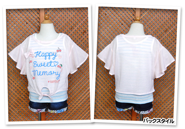 | 特長 | ・LOVE POWERS(ラブパワーズ)・アンサンブル/コンポ・ネームタグ付き[アウター]・半袖Tシャツ ・梨地・ドルマン/ゆったりシルエット・フレア袖 ・リボン装飾・ロゴプリント ・ラメプリント・透け感あり[インナー]・タンクトップ・ボーダー柄 ・ロゴプリント・子供用 ・女の子 |