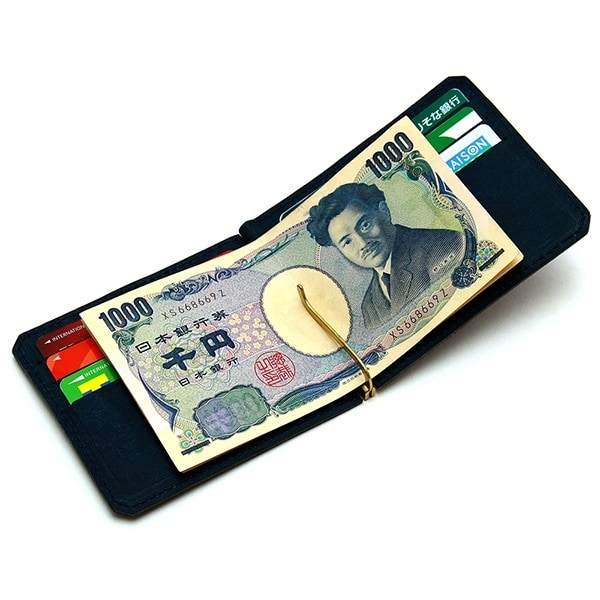 蝶番の構造を革と金具で再現し、マネークリップとして生かしました。