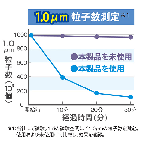 ※スギ花粉(5μm以上)を強運転時90分で70%以上低減。