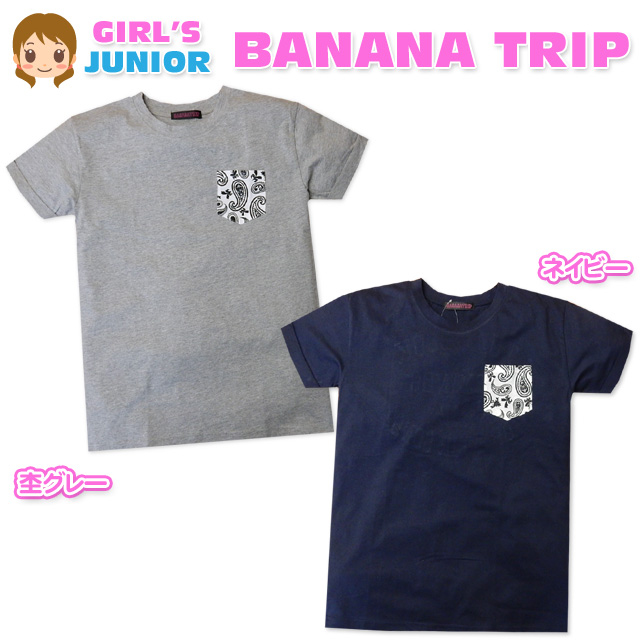 [特長]・BANANA TRIP(バナナトリップ)・半袖Tシャツ ・天竺素材・胸ポケット ・ペイズリー柄・刺繍ロゴ ・ロールアップ・子供用 ・女の子