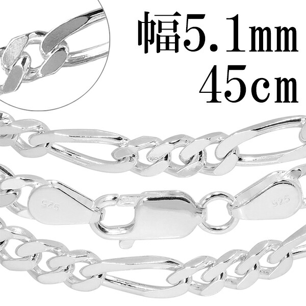 シルバーチェーン チェーン ネックレス フィガロチェーン 幅約5.1mm 45cm シルバー925 チェーンネックレス メンズ レディース 銀 フィガロ チェーンのみ