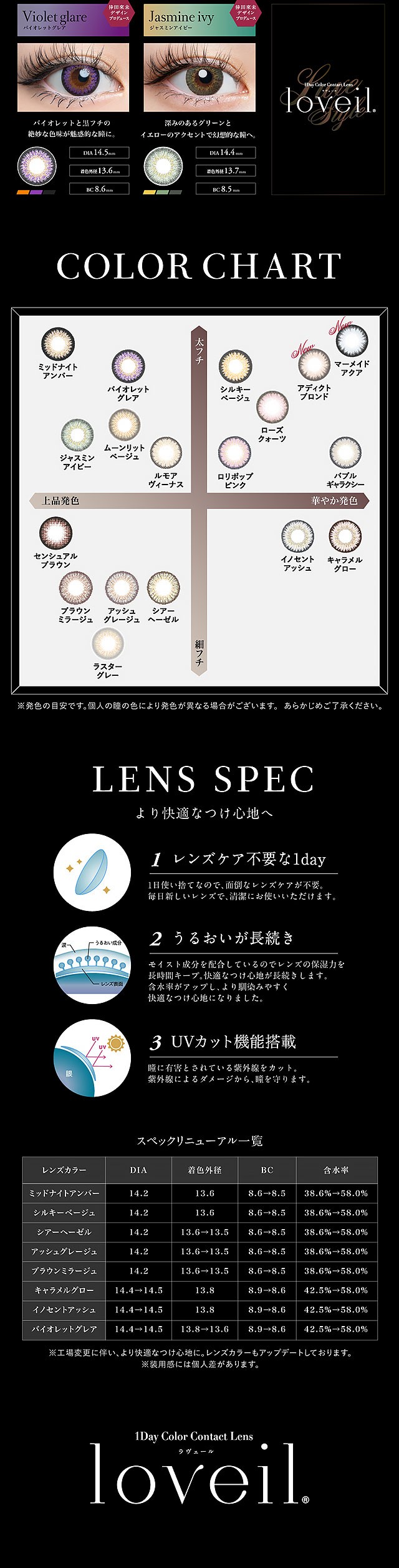 ■レンズ直径(DIA):14.2mm、14.4mm、14.5mm
