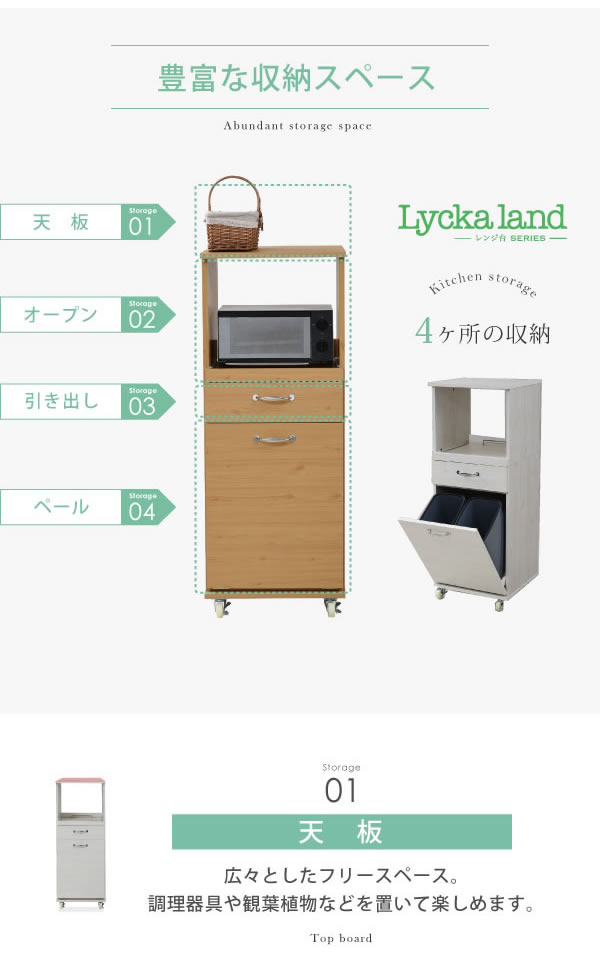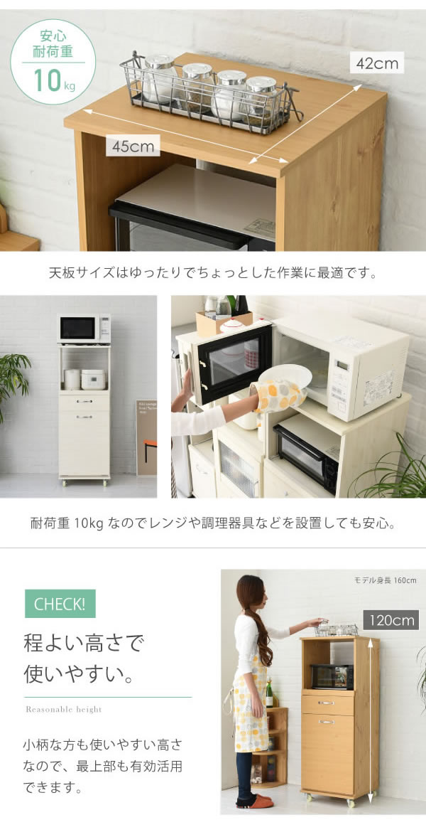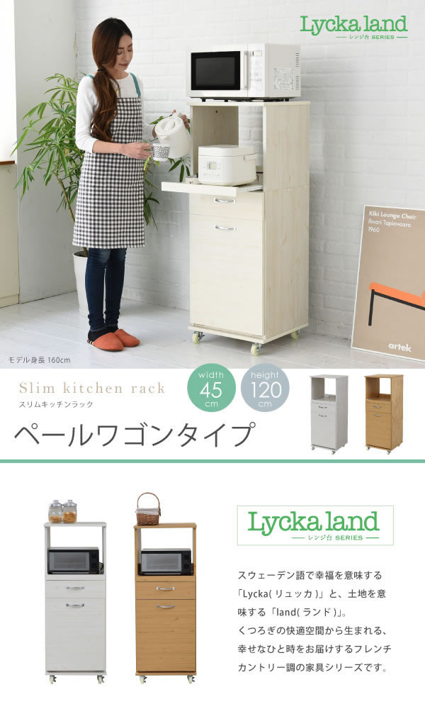 食器棚 コンパクト 幅45 H120 レンジ台 ラック おしゃれ ダストボックス ペール付 ミニ キッチン 収納 すき間 棚 ロータイプ