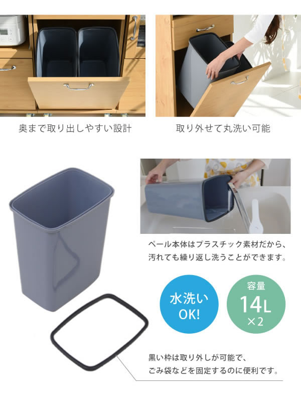 | 備考 | ・14Lペール2個付き ・背面化粧有り ・キャスター4個(うちストッパー2個) |