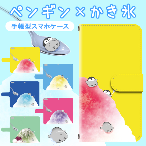 スマホケース 手帳型 多機種対応 カメラホール搭載 ストラップホール付き カード収納 ベルト付き ペンギン かき氷 アニマル イラスト かわいい 癒し 携帯ケース 携帯カバー ぺんぎん 動物柄 手帳型スマホケース 手帳型ケース 手帖型 てちょう 全機種対応