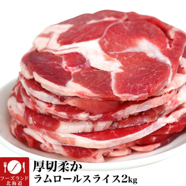 ラム肉 2kg前後 ロールスライス 厚切 味付けなし(多少切れ端入ります)