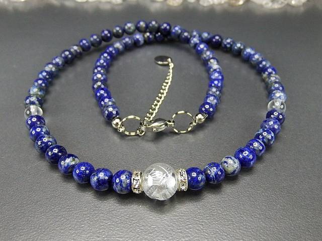 ラピスラズリネックレス水晶銀龍手彫り天然石ステンレス金具石街