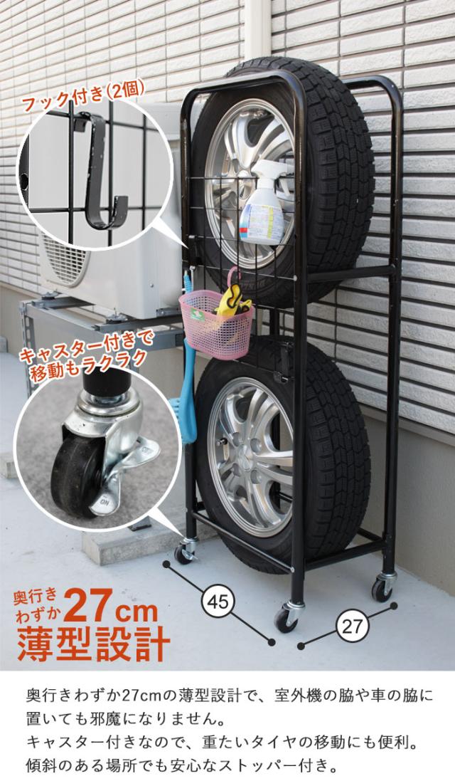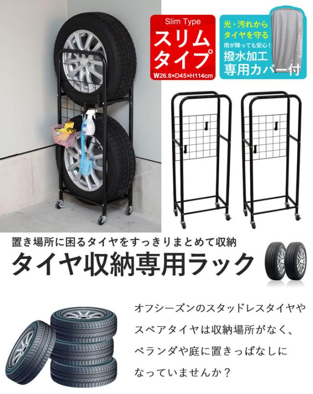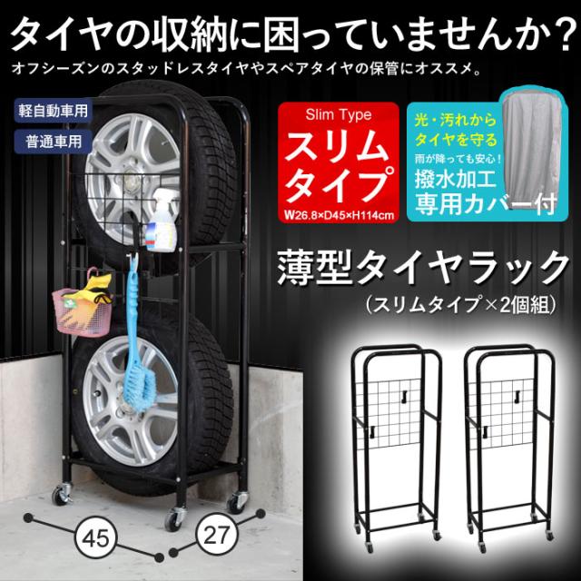 【在庫処分セール】タイヤ 収納 タイヤ収納 タイヤラック カバー付き 2個組 幅27/奥行45/高さ114 薄型 ラック タイヤ保管 カバー