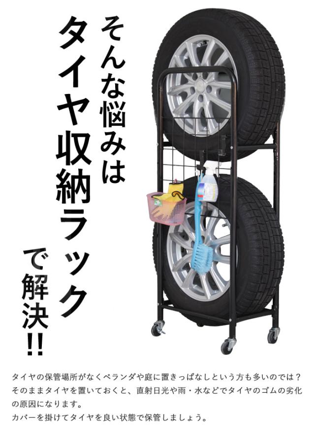 車1台分のタイヤ4本が収納できるタイヤラック。