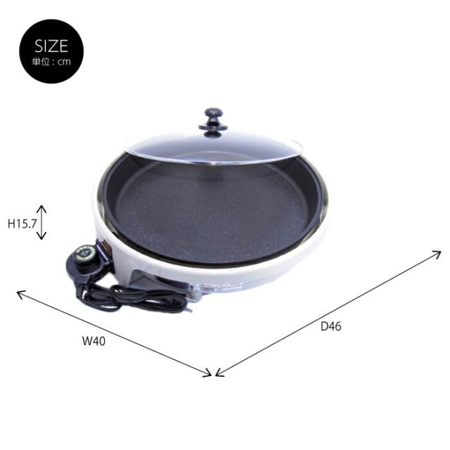 | □ 本体:幅40×奥行46×高さ15.7cm □ プレート [内径]34.5cm [外径]36cm [深さ]5cm |