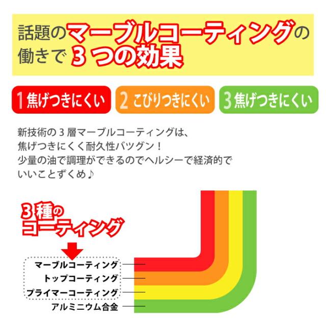 焦げつきにくい、こびりつきにくい、傷つきにくい、マーブル3層コーティングのホットプレート。