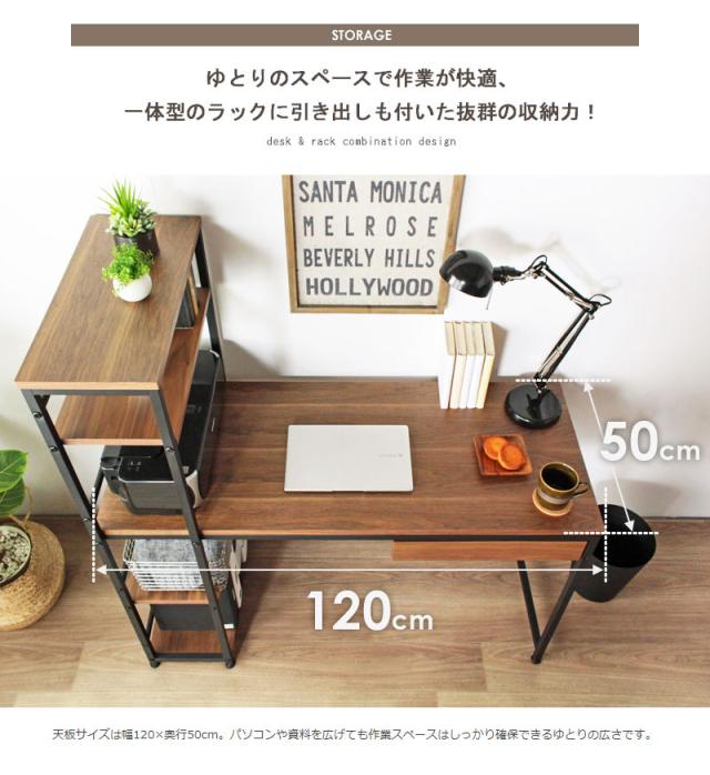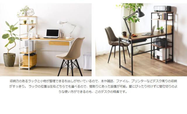 ラック付きデスク ラック 一体型 棚付きデスク 机 引き出し付き 棚 プリンタ サイドラック 学習デスク オフィス 学習机 勉強机 ミッドセンチュリー 収納付 つくえ 机 北欧 モダン おしゃれ 一人暮らし 新生活