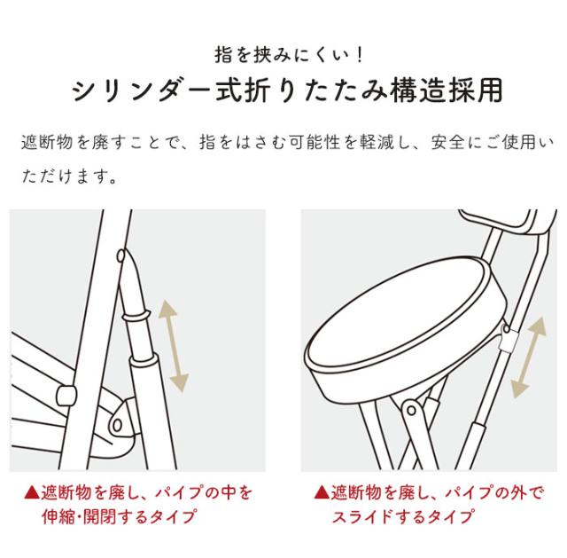 | ・指を挟みにくいシリンダー式折り畳み構造 ・ウレタンを使用したふわふわ座面 ・カラーで表情の違うツイード調ファブリック使用 |