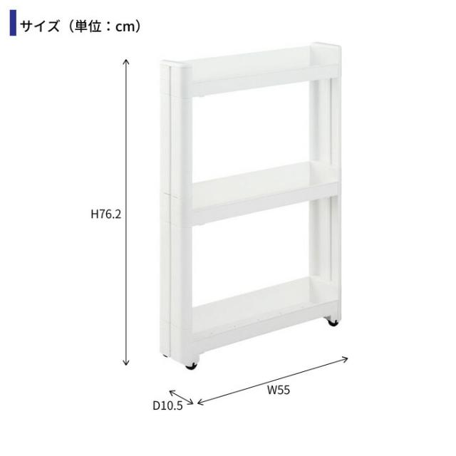 隙間収納 幅10.5cm 奥行55cm 3段 隙間 収納 ワゴン すきま収納 スリムワゴン キャスター付き 収納 ラック ワゴン 隙間 収納 すき間収納 スリムラック キッチンラック ストッカー スリム収納 収納 ランドリー