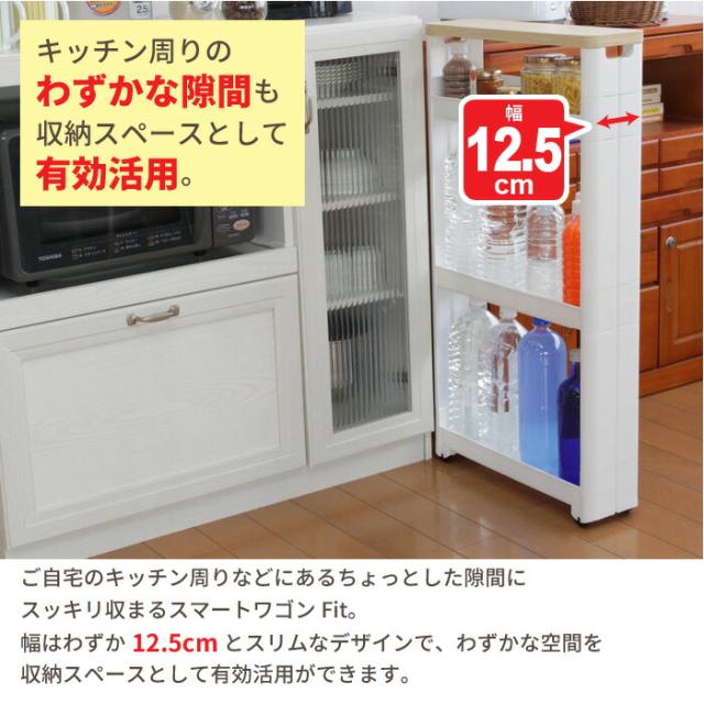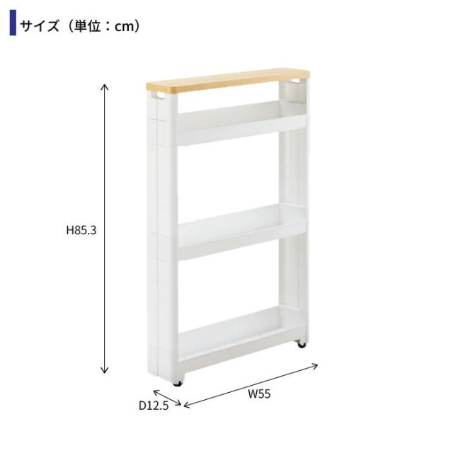 隙間収納 ワゴン キャスター付き 収納 スリムワゴン 幅12.5cm 奥行55cm 4段 木製天板 すき間収納 隙間 ストッカー キッチン スリム収納 ラック 調味料 収納 ランドリー すき間 一人暮らし 新生活