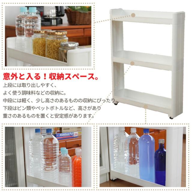どこにでもあるわずかなデッドスペースに調味料やボトル類をすっきり収納。