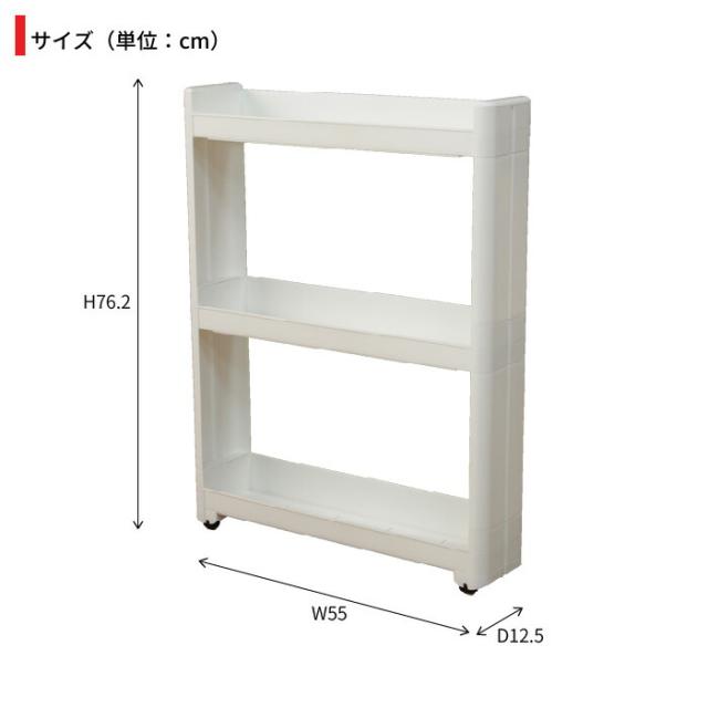 隙間収納 ワゴン キャスター付き 収納 スリムワゴン 幅12.5cm 奥行55cm 3段 すき間収納 隙間 ストッカー キッチン スリム収納 ラック 調味料 収納 ランドリー トイレ すき間 新生活 一人暮らし