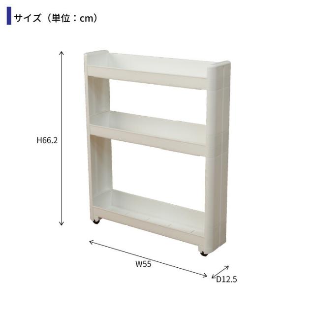 隙間収納 幅12.5cm 奥行55cm 3段 隙間 収納 ワゴン すきま収納 スリムワゴン キャスター付き 収納 ラック ワゴン 隙間 収納 すき間収納 スリムラック キッチンラック ストッカー スリム収納 収納 ランドリー