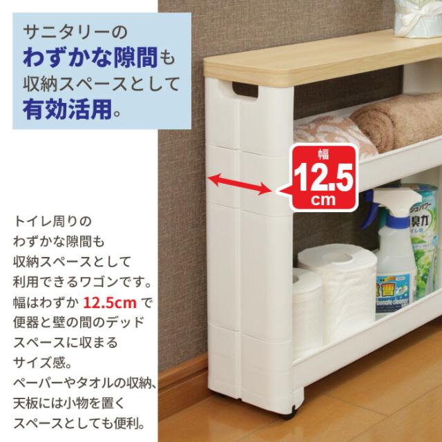 トイレ収納 スリム スマートワゴン サニタリー 3段 ホワイト 幅12.5 奥行45 高さ43cm 隙間収納 すき間収納 すきま収納 すきま収納 キャスター 収納ラック キャスター付き 収納ラック スリム