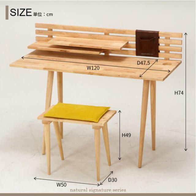 | [全体]幅120×奥行47.5×高さ74cm [スツール]幅50×奥行30×高さ49cm |