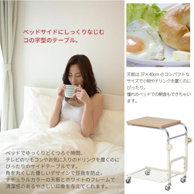 【値下げ】サイドテーブル キャスター付き ベッドテーブル テーブル ソファ サイド ナイトテーブル リビング 寝室 ベッド 作業台 作業テーブル 補助テーブル キャスター ワゴン スリム ホワイト ナチュラル 北欧 おしゃれ 新生活 一人暮らし
