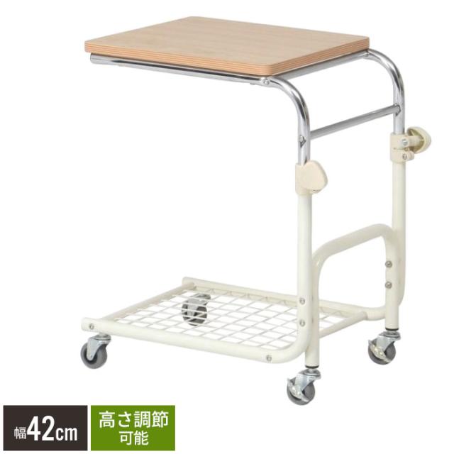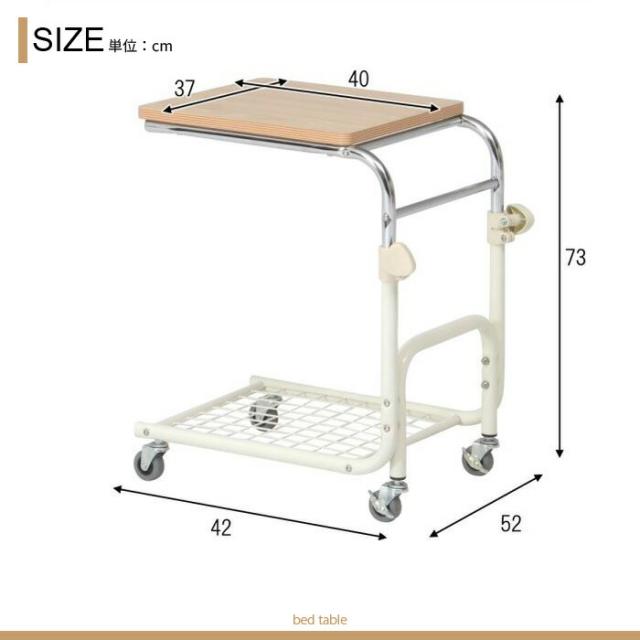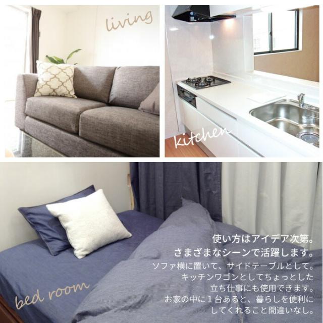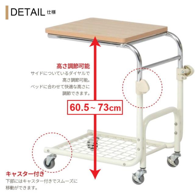 | ベッドサイドやソファーサイドに使える便利なテーブル。 キャスター付きで移動に便利。 |