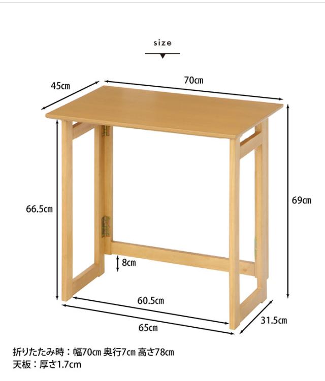 【値下げ】折りたたみデスク 幅70 奥行45 高さ69cm デスク 机 勉強机 ワークデスク コンパクト 折り畳みデスク 折りたたみ机 パソコンデスク