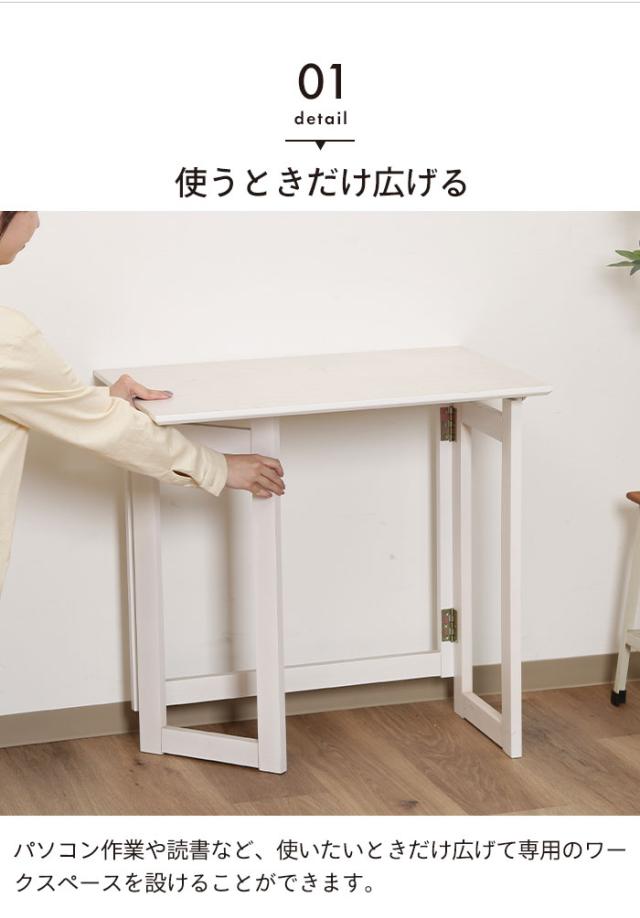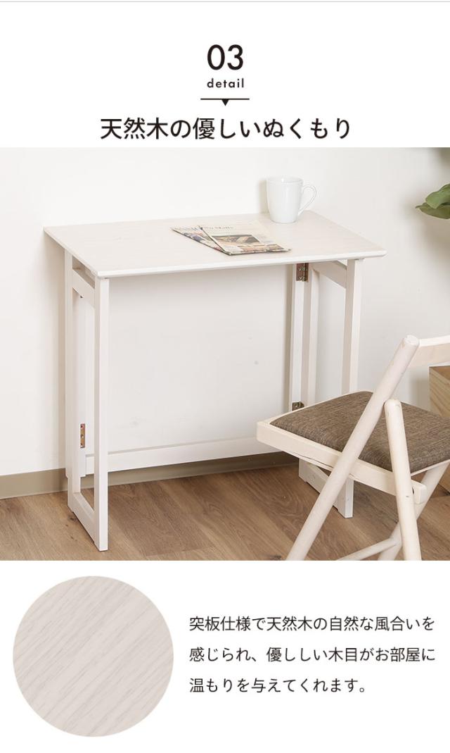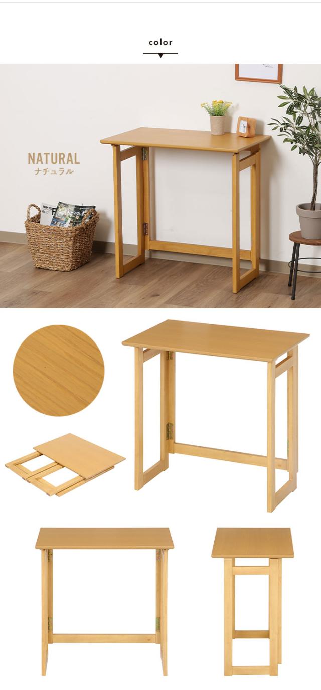 | 天然木を使用しており、木のぬくもりを感じる優しい空間を演出してくれます。 コンパクトなサイズで場所をとらないので1人暮らしの方やワンルームにお住いの方にもオススメです。 PC机や作業机、お子様の勉強机など様々な使い方ができます。 折りたたむことができるので使用時以外は省スペースに収納が可能です。 |