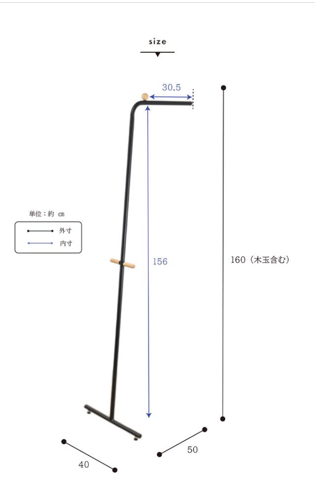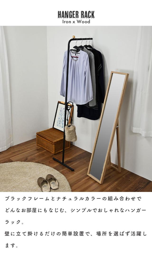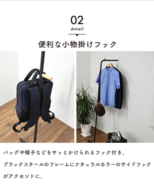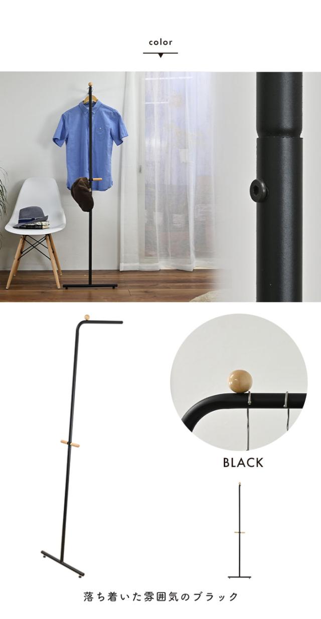ブラックフレームとナチュラルカラーの組み合わせがどんなお部屋にもなじむ、シンプルでおしゃれなコートハンガーです。