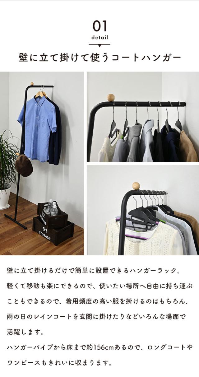 ハンガーラック 立てかけ 壁掛け ポールハンガー パイプハンガー コート掛け 衣類掛け ウォールハンガー 立て掛け スタンドハンガー ラック シンプル おしゃれ 玄関 コンパクト 省スペース スリム リビング スチール ブラック フレーム アイアン