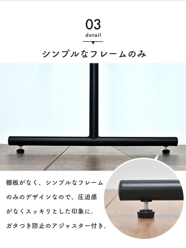 | 壁に立て掛けるだけで簡単に設置できるコートハンガー。 軽くて移動も楽にできるので、使いたい場所へ自由に持ち運ぶことができます。 ハンガーパイプから棚板まで約156cmあるので、ロングコートやワンピースもきれいに収まります。 バッグや帽子などをサッとかけられるフック付き。 ブラックフレームとナチュラルカラーの組み合わせがどんなお部屋にもなじむ、シンプルでおしゃれなコートハンガーです。 ガタつき防止のアジャスター付き。 |