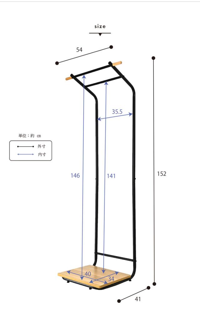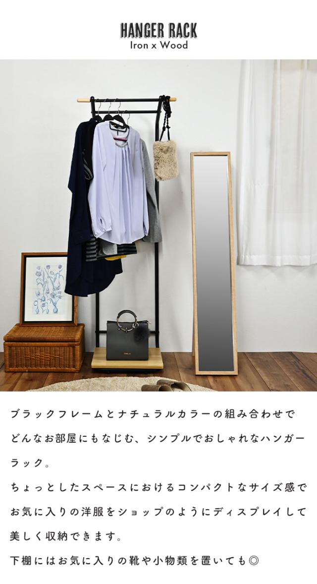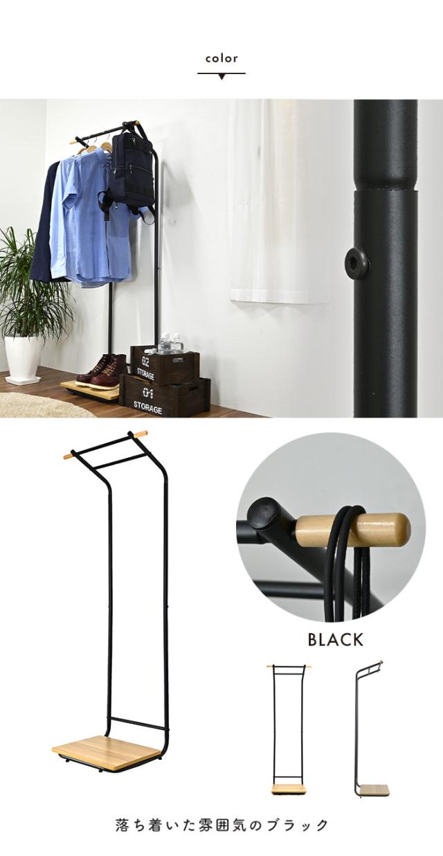 ブラックフレームとナチュラルカラーの組み合わせがどんなお部屋にもなじむ、シンプルでおしゃれなハンガーラック。