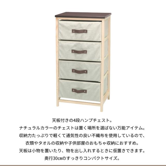 【値下げ】チェスト 4段 帆布 天板 木製 ランドリー リビング 収納 布地 北欧 おしゃれ タオル 衣類 服/新品アウトレット