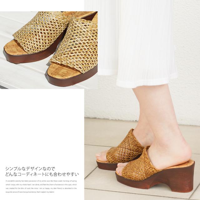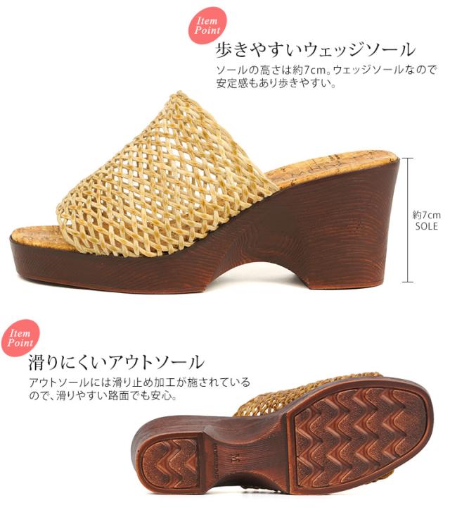サンダル レディース つっかけ サンダル レディース 厚底 クッション ウェッジソール 厚底サンダル ミュール サンダル ヒール オープントゥ ウェッジサンダル 履きやすい 春夏 メッシュ 日本製 黒 ブラック ベージュ ブラウン 6200 送料無料
